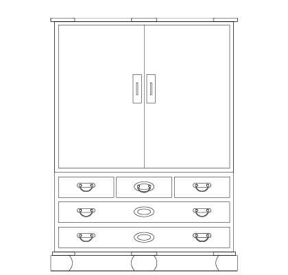 This seven-drawer chest was created for customers who desire more drawers than the five-drawer version. The main body can be separated into two parts for ease of transport in compact spaces such as staircases spaces. From the main body to the materials of the drawers, all wood components are made of paulownia wood with straight grain and low distortion called "Masa". Despite this chest being a two-piece design, it maintains a single continuous piece of wood from top to bottom, making it remarkably distinguished by its beautiful wood grain. The three small drawers and the six large drawers, as well as hidden compartments, can all be locked by key. In addition, hidden compartments are also included.