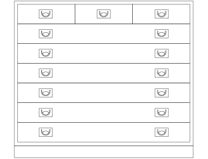 このモデルは高野シリーズの一番人気商品で、上から三杯の小抽斗に大きな六杯の抽斗で出来ています。このチェストはシンプルながらも数点のカラクリを作っておりますが、カラクリ等は防犯のためお買い上げいただきましたお客様だけにお伝えさせていただきます。また、お客様オリジナルのカラクリもオーダー可能です。仕上げは民芸紀の国シリーズと同じ焼き桐柿渋砥の粉仕上げもお選びいただけます。